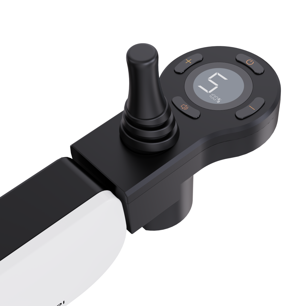 Hela fordonet väger bara 20,5 kg med nytt kolfibermaterial för lätthet, vilket gör det till den lättaste fällbara elektriska rullstolen på marknaden